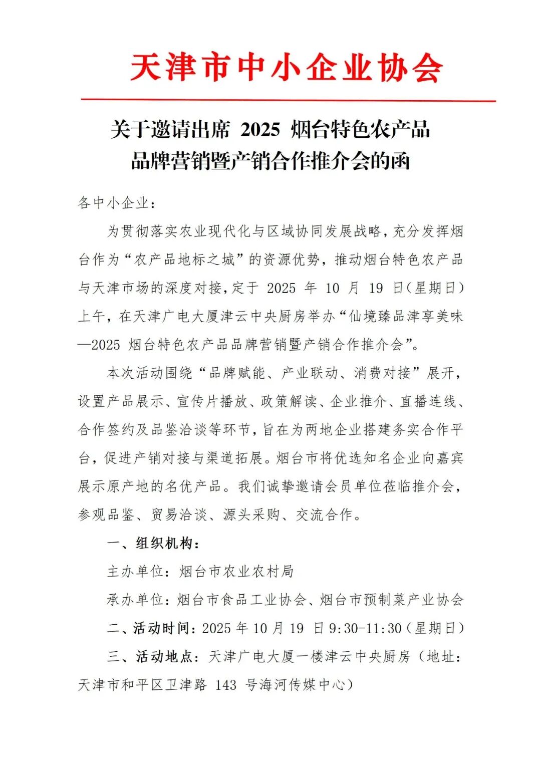 足球赌注平台对于邀请出席 2025 烟台脾气农家具品牌营销暨产销协作推介会的函-足球赌注平台-登录入口