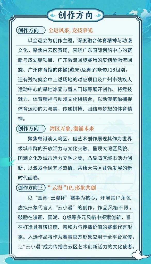 “国潮 · 云漫杯”动漫创作大赛自2021年首届举办以来,已成为白云区文化创意产业限制的标杆赛事,联络四年劝诱寰宇超万名创作家参与,成为鼓吹国潮动漫文化改换、挖掘更生代操办力量的中枢平台。